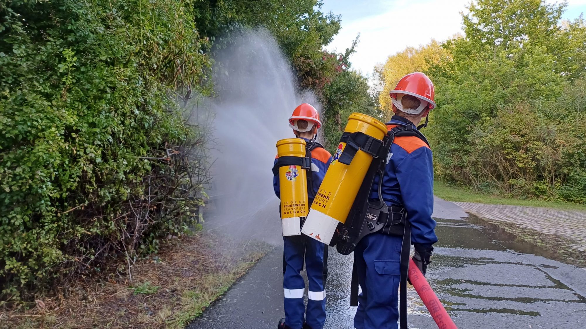Die Jugendfeuerwehr der Freiwilligen Feuerwehr Frankfurt am Main Kalbach übt realitätsnah den Umgang mit feuerwehrtechnischen Geräten. Dazu gehören Löschangriff, einfache, technische Maßnahmen und auch Personenrettung/Erste Hilfe.